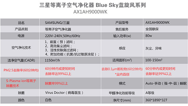 除了良好的潔凈效果之外,這款三星空氣凈化器還加入了Virus Doctor除菌系統,通過特有的SPI等離子除菌技術,不僅可以去除空氣中的自然細菌,還可以有效去除與SARS病毒同科的冠狀病毒、H1N1等頑固病毒,這一點也通過了韓國幾所大學的相關實驗室檢測。