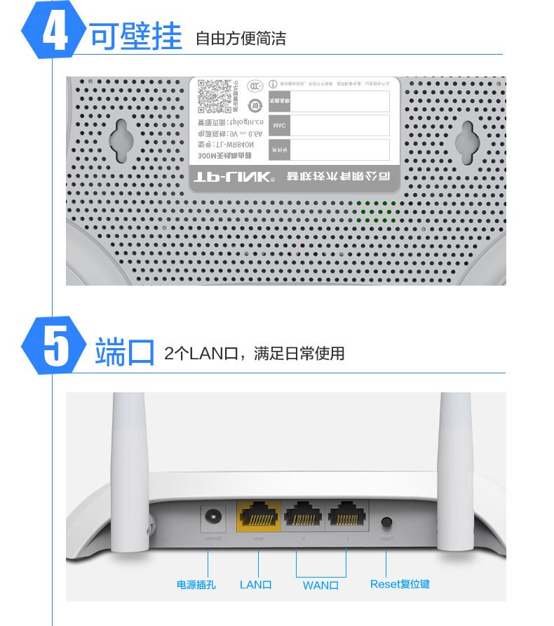 傳輸速率:300Mbps 頻率范圍:單頻(2.4-2.4835GHz)展頻技術:DSSS(直接序列展頻)傳輸功率:20dBm(最大值)網絡接口:1個WAN口,4個LAN口